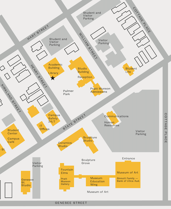 The Library is located on the second floor of the Pratt Munson Academic Building at 510 Henry St., Utica, N.Y. 13502.